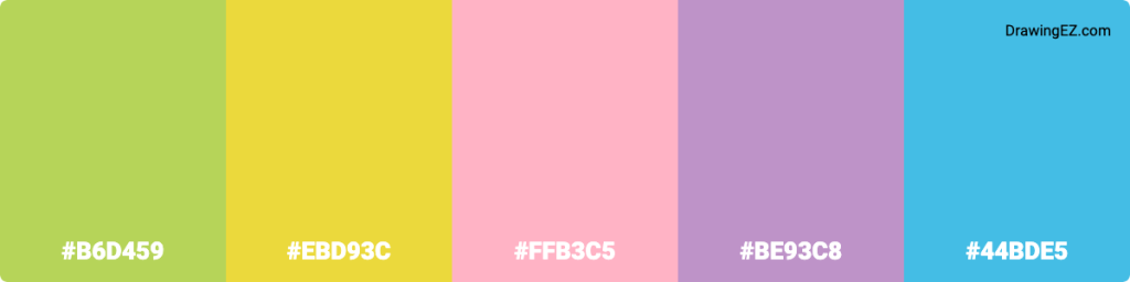 4. Floral Fantasy: #B6D459, #EBD93C, #FFB3C5, #BE93C8, #44BDE5