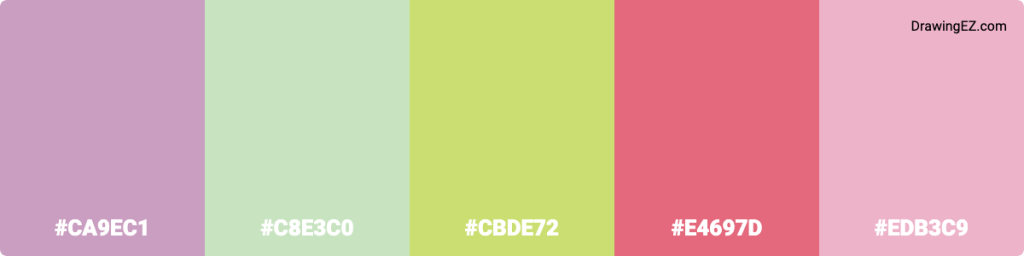 2. Botanical Bliss: #CA9EC1, #C8E3C0, #CBDE72, #E4697D, #EDB3C9
